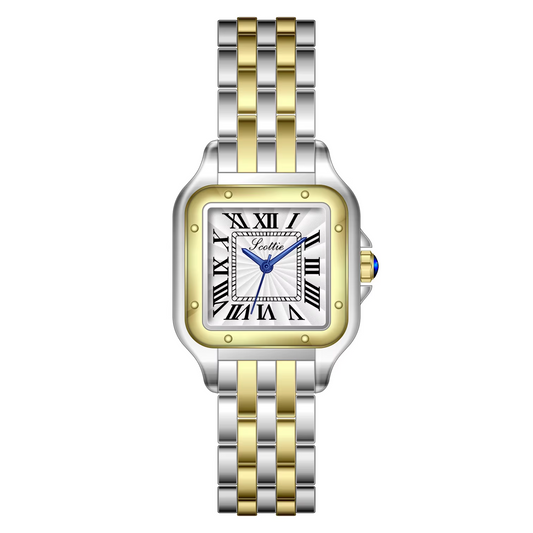 Ensemble de Luxe Scottie : Montre Femme et 2 Bracelets en Acier Inoxydable Plaqué Or 18K