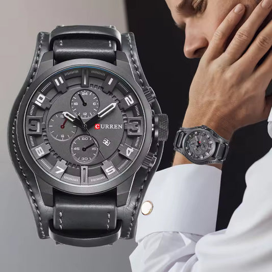 Montre CURREN 8225 Cuir Noir pour Homme - Congo