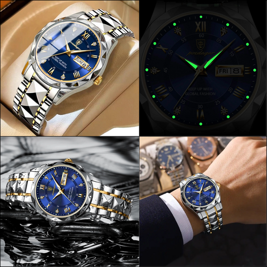 Montre de Luxe pour Hommes Poedagar - Analogique Quartz avec Bracelet en Acier Inoxydable, Étanche et Lumineuse
