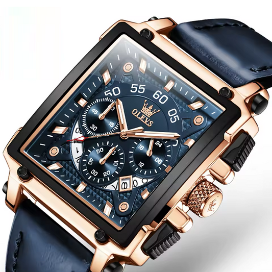 Montre de Luxe OLEVS 9919 Homme Cuir Bleu – Élégance et Performance en Quartz