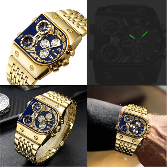 Montre Oulm HT9315 pour Hommes - Montre en Acier Inoxydable Plaqué Or, Quartz, Grande Taille
