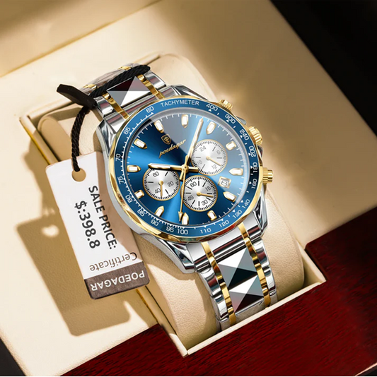 Montre Homme Chronographe POEDAGAR – Luxe, Quartz, Étanche & Bracelet Acier