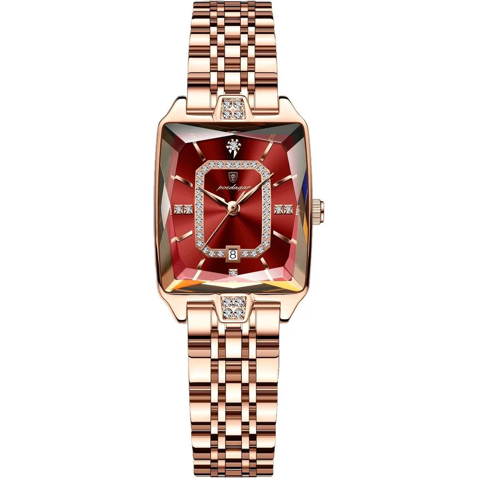 POEDAGAR 785 – Montre Femme Luxe Acier Or Rose avec Cadran Cristal & Diamants